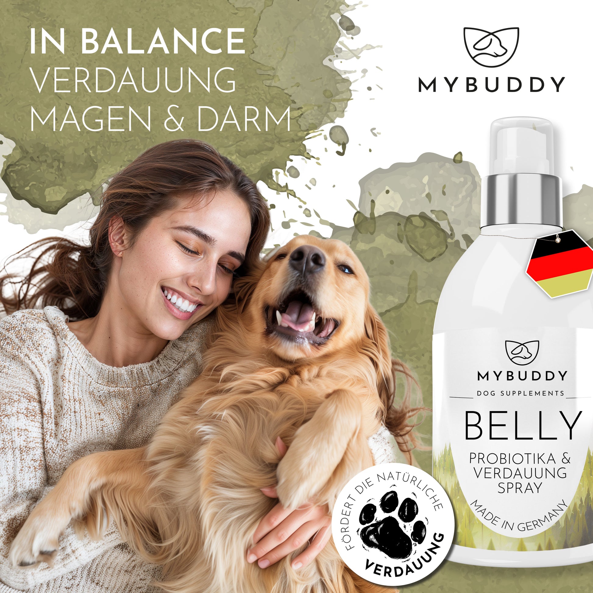 Fördere die Darmgesundheit & Verdauung Deines Hundes mit dem MYBUDDY BELLY Probiotika und Darm Spray...